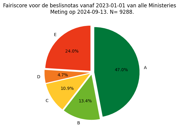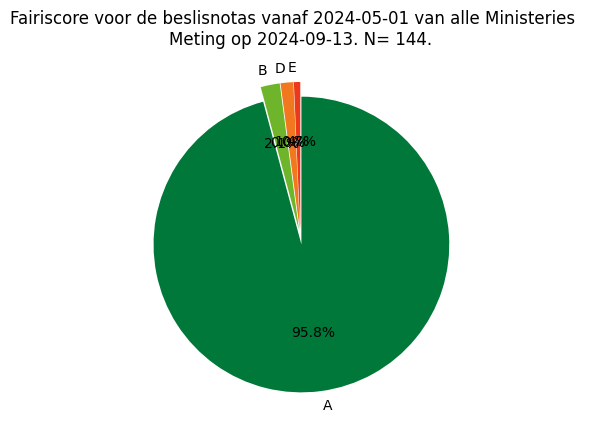 Het goede nieuws komt geweldig mooi tot uiting in de vergelijking van de meting na 1 mei (het bovenste taartdiagram) en de meting van alle beslisnota’s uit 2023 en 2024 (taartdiagram hieronder dat ook op de challenge stond).