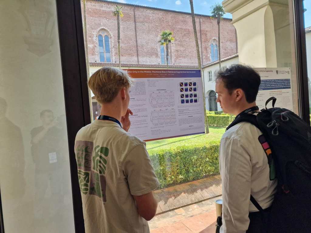 Jan Hutter presenteerde tijdens een pitch en postersessie de paper “Lost but Not Only in the Middle: Positional Bias in Retrieval Augmented Generation”